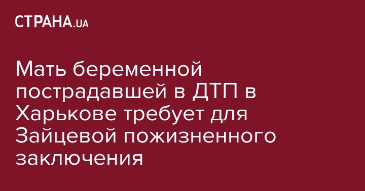 Мать 30-летней харьковчанки Жанны Власенко, которая находясь на шестом месяце беременности пострадала в ДТП в центре Харькова, заявила, что хочет для Елены Зайцевой, которая была за рулем Lexus, пожизненного заключения. Об этом пишет УНИАН.