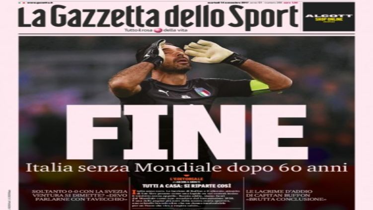 La Repubblica написала, что "у апокалипсиса – темно-синий цвет. У него горький вкус слез Джанлуиджи Буффона и разбитое сердце: для него не будет шестого Кубка Мира".