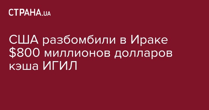 Представитель военного командования США в Ираке генерал Питер Герстен заявил о том, что удалось уничтожить около 800 миллионов долларов наличных, принадлежавших террористам ИГИЛ. Деньги были "изъяты из хозяйственного оборота" террористов во время ракетно-бомбовых атак на различные объекты, контролируемые ИГИЛ, передает УНН.