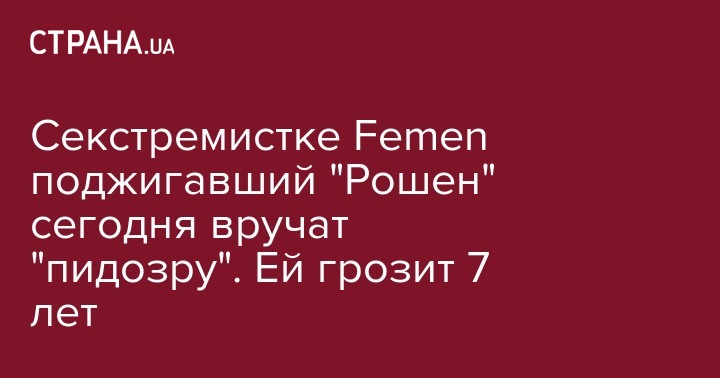 Также с официальным заявлением по поводу задержания выступила группа Femen. Они утверждают, что секстримистке грозит лишение свободы до 7 лет.