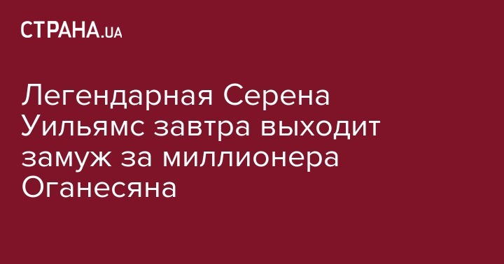Легендарная Серена Уильямс завтра выходит замуж за миллионера Оганесяна