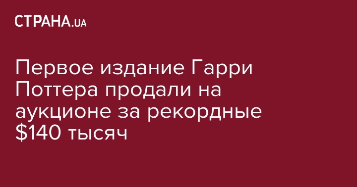 Первое издание Гарри Поттера продали на аукционе за рекордные $140 тысяч