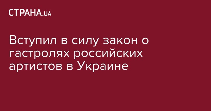 В четверг, 16 ноября, вступил в силу закон, запрещающий в Украине гастроли российских артистов, которые создают угрозу нацбезопасности. Об этом сообщают РИА Новости.