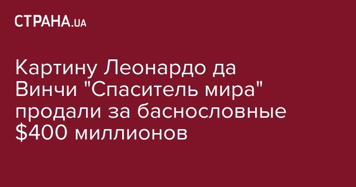 Картина Леонардо да Винчи "Спаситель мира" стала самой дорогой в мире после того, как была продана на аукционе Christie's в Нью-Йорке за $400 млн. Об этом сообщает Associated Press.