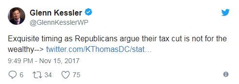 "Идеальный момент для фото, ведь республиканцы утверждают, что снижают налоги не ради богачей", - прокомментировал снимок журналист Гленн Кеслер.