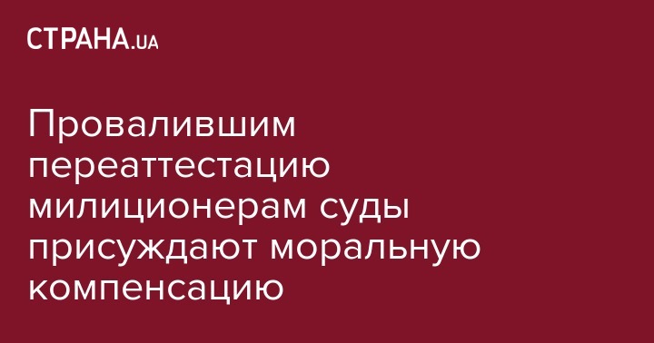 Милиционерам, которые не стали полицейскими из-за провала переаттестации, выдают деньги в виде моральной компенсации. Как написал на своей странице в Facebook активист, член комиссии по переаттестации в МВД Евгений Голубенко, на днях Киевский окружной админсуд присудил 5 тыс. грн моральной компенсации столичному оперуполномоченному, который в феврале был уволен аттестационной комиссией.