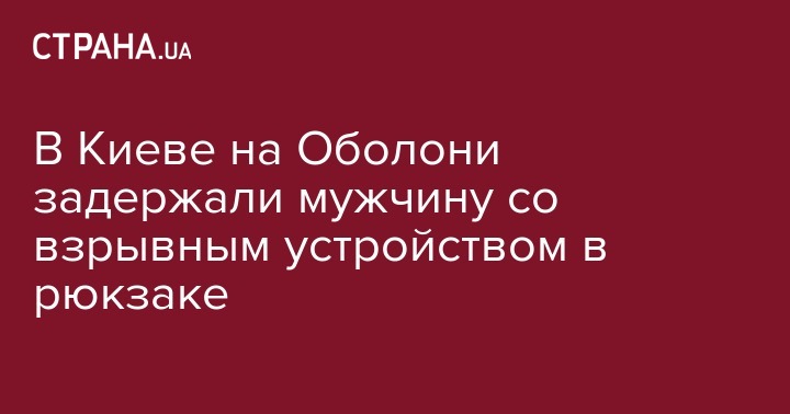 В Киеве полиция задержала мужчину с самодельным взрывным устройством в рюкзаке. Об этом сообщает пресс-служба Нацполиции.