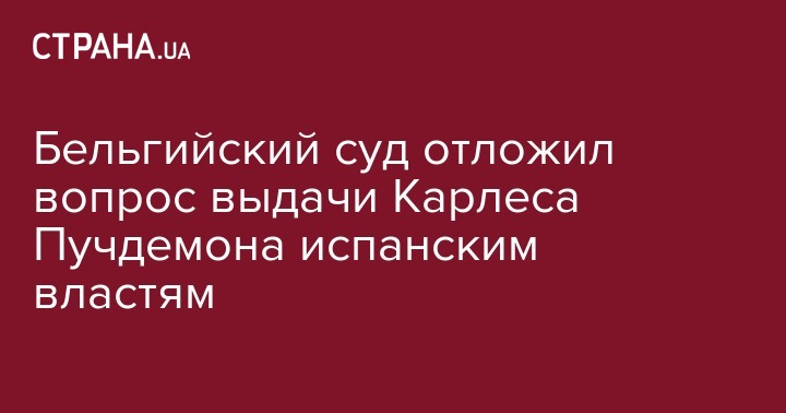 В суде Бельгии отложили принятие окончательного по вопросу выдачи властям Испании бывшего главы правительства Каталонии Карлеса Пучдемона и четырех членов его кабинета. Об этом передает испанское издание El Pais.