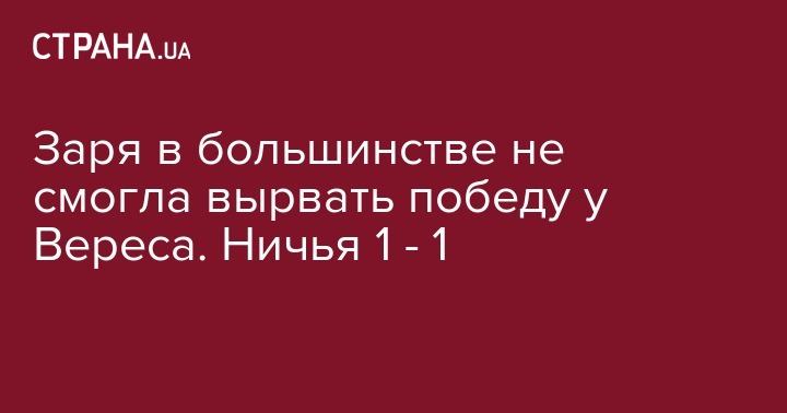 Заря в большинстве не смогла вырвать победу у Вереса. Ничья 1 - 1