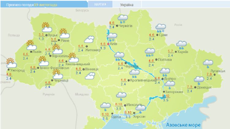19 ноября в Киеве будет снег с дождем Фото: meteo.gov.ua