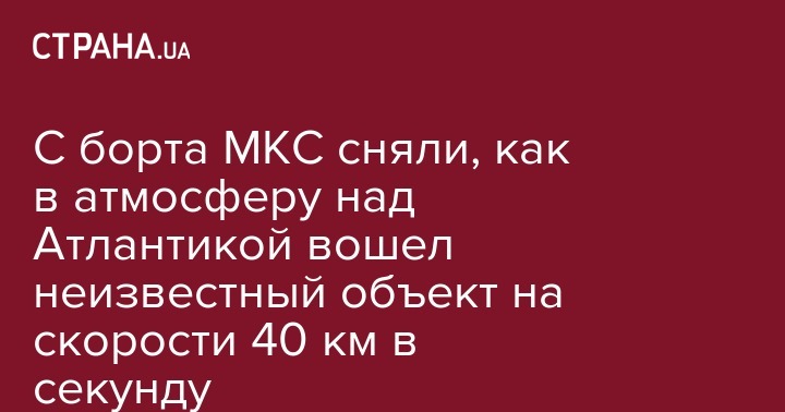 С борта МКС сняли, как в атмосферу над Атлантикой вошел неизвестный объект на скорости 40 км в секунду