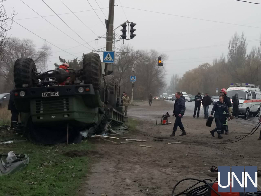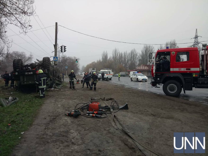 В Запорожье перевернулся грузовик с военными, один человек погиб. Фото