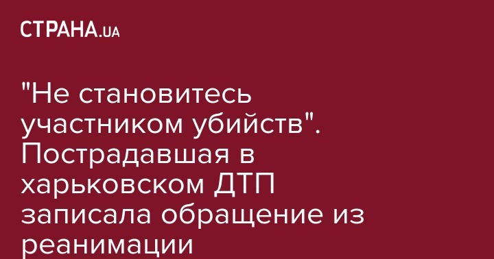 "Не становитесь участником убийств". Пострадавшая в харьковском ДТП записала обращение из реанимации