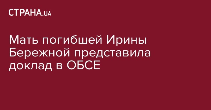 Мать погибшей в ДТП экс-депутата Верховной Рады Ирины Бережной представила доклад в ОБСЕ. Об этом он написала на своей странице в Facebook.