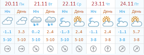 Сайт Укргидрометцентра обещает пасмурный понедельник, дождь со снегом во вторник, а затем переменную облачность до выходных. Днем обещают +2...+4, ночью +1...-3.