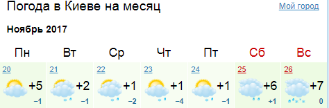 "Страна" продолжает проект "Битва синоптиков" очередным прогнозом погоды на неделю в Киеве. Мы собрали данные с 20 по 27 ноября от пяти ведущих метеосайтов страны. В конце недели мы сравним прогнозы с тем, что происходило на самом деле, чтобы назвать самый точный и самый недостоверный из них.