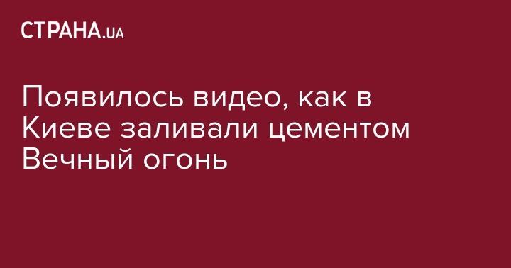 В Киеве камера видеонаблюдения зафиксировала, как вечный огонь в Парке Славы заливают цементом. Запись с камер распространила компания "Киевгаз" на своей странице в Facebook.