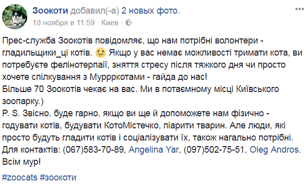 Соответствующая просьба опубликована на Facebook-странице Котогородка.
