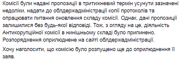 Брыль утверждает, что он подписал распоряжение об отмене антикоррупционной комиссии при ОГА исключительно из-за того, что в ее работе выявили ряд нарушений.