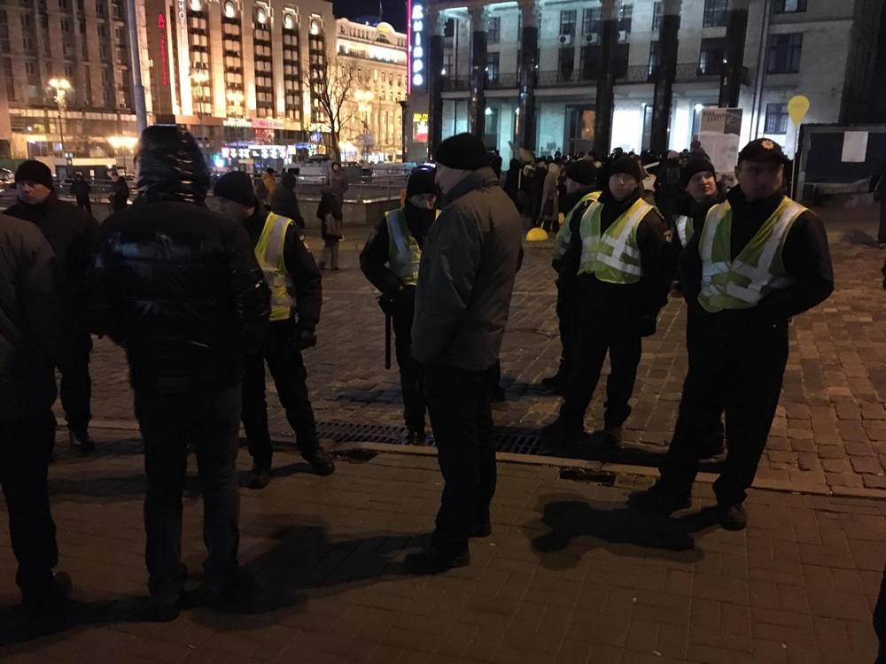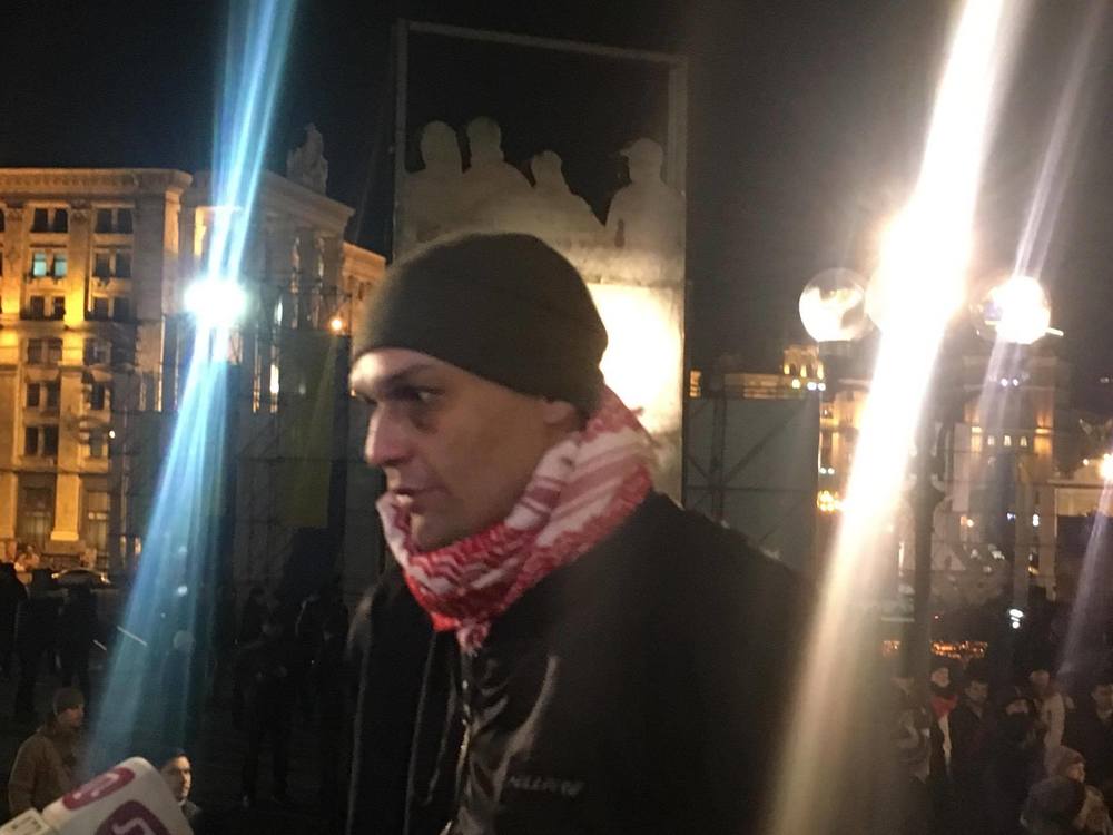 18:04 Лидер активистов Сергей Мельниченко простит полицейских уйти от сцены. Говорит, что установка палаток санкционирована.