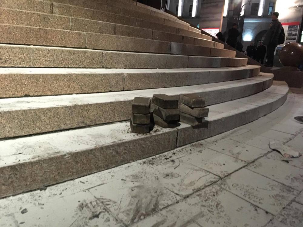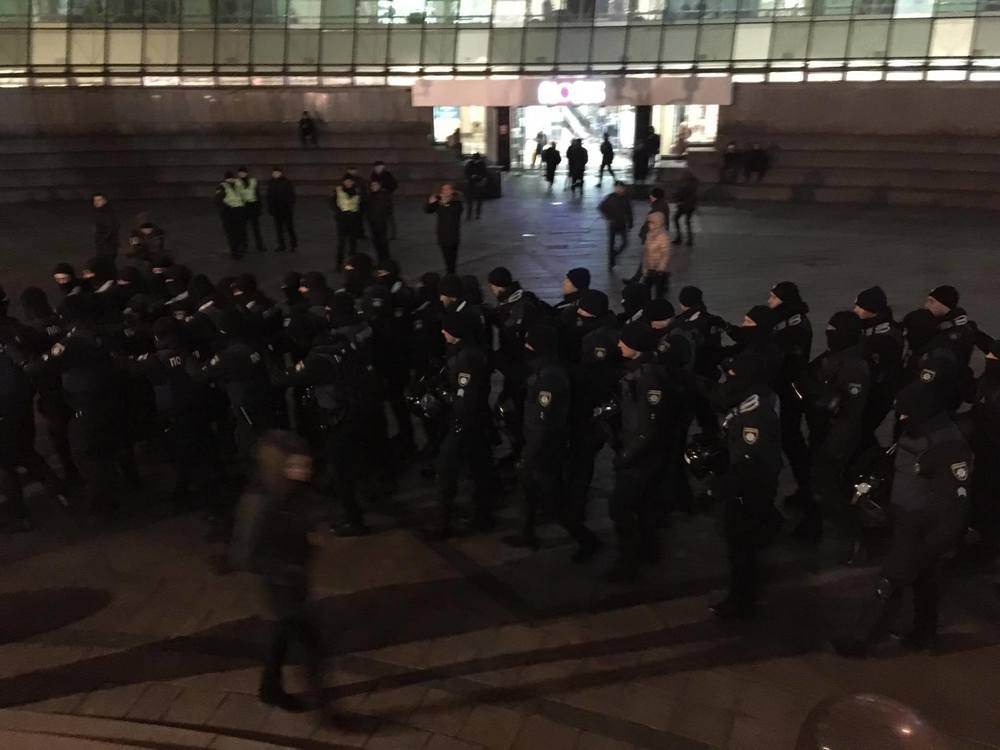 20:13 Возобновились стычки. Полиция снова зашла на площадь. Ей кричат "Вон отсюда!" Полицейские забрали палатки и ушли в сторону Институтской.