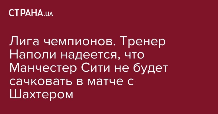 Лига чемпионов. Тренер Наполи надеется, что Манчестер Сити не будет сачковать в матче с Шахтером