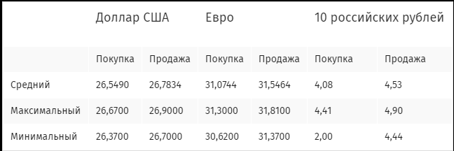 Курсы наличной иностранной валюты: