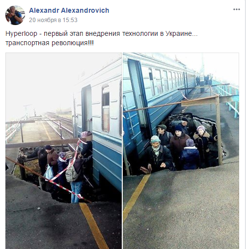 "Hyperloop - первый этап внедрения технологии в Украине... транспортная революция!" - иронизирует пользователь, разместивший фото.
