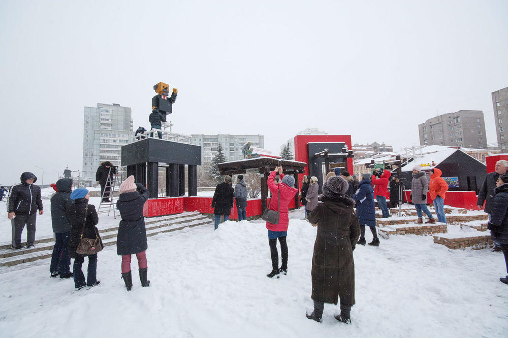 В Красноярске установили памятник Ленину в стиле трехмерного пикселя