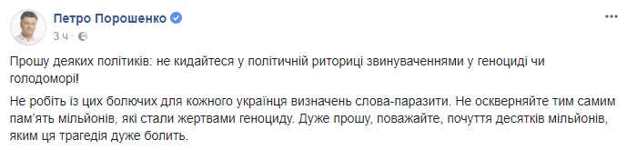 "Прошу некоторых политиков: не бросайтесь в политической риторике обвинениями в геноциде или голодоморе!