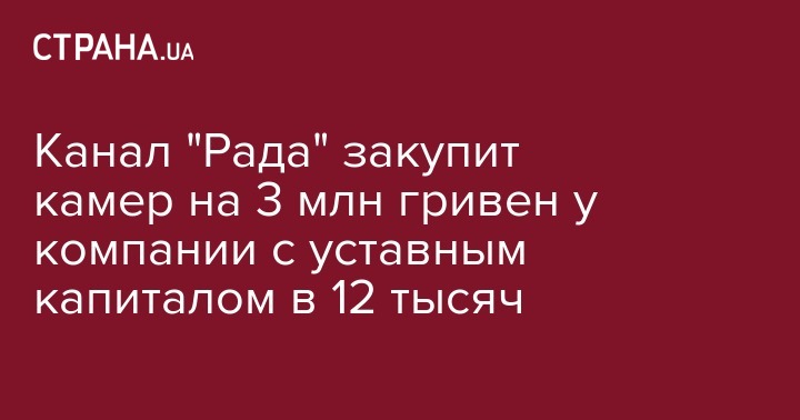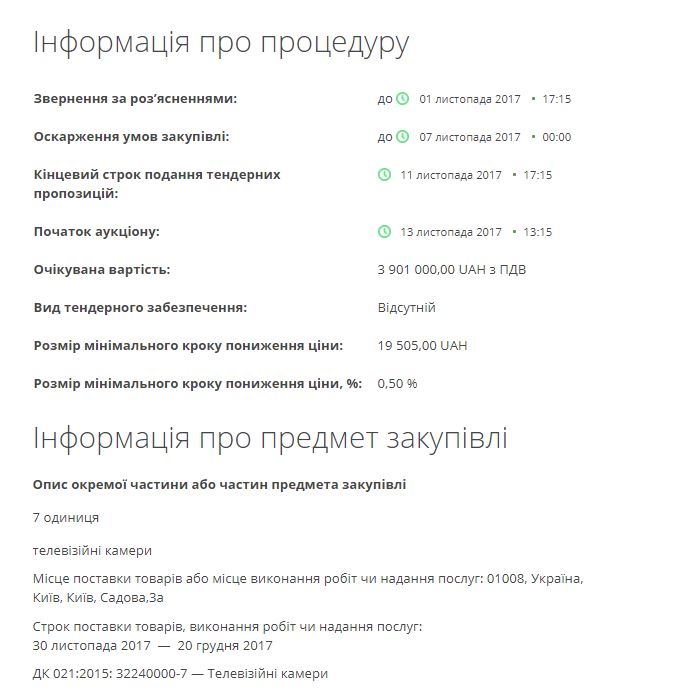 Компания "Инженер-сервис" (Киев) выиграла тендер на поставку государственному предприятию "Парламентский телеканал "Рада" 7 телевизионных камер за 3 040 000 гривен. Об этом сообщается на портале публичных электронных закупок ProZorro, передают "Украинские новости".