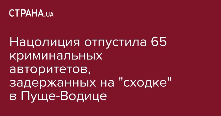 65 криминальных авторитетов, задержанных 26 ноября в Пуще-Водице Киевской области на "сходке", отпустили. Об этом заявил начальник управления Нацполиции Киева Андрей Крищенко, передает 112 Украина.