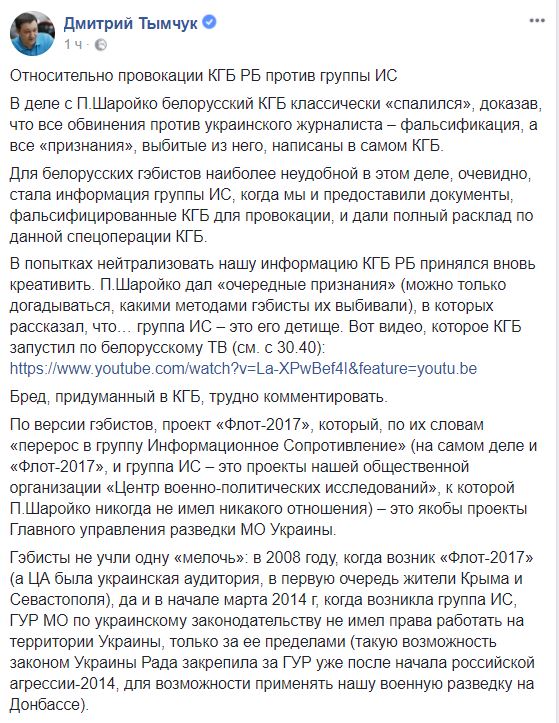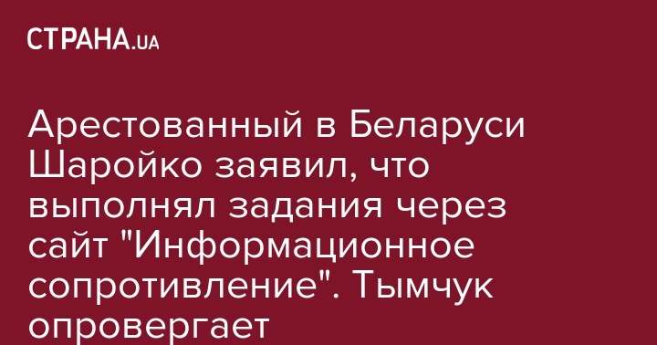 Арестованный в Беларуси Шаройко заявил, что выполнял задания через сайт "Информационное сопротивление". Тымчук опровергает