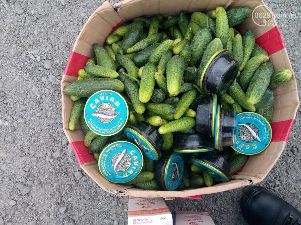 Эти дорогостоящие лакомства гражданин Украины пытался провезти на неподконтрольную территорию на автомобиле Chevrolet Evanda. Судя по фото, икру мужчина пытался спрятать в ящиках с картошкой и огурцами.