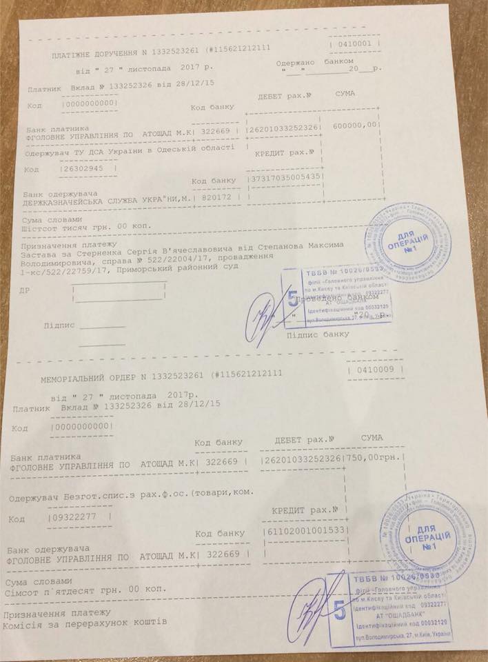 При этом губернатор одесской области Максим Степанов изъявил желание внести залог за арестованного Сергея Стерненко.