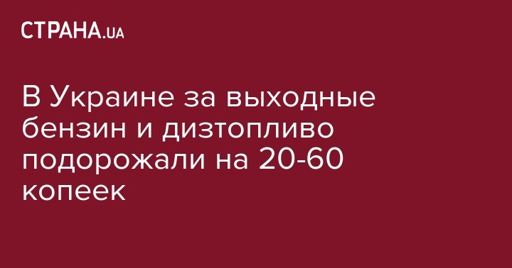 В Украине за минувших выходные бензин и дизтопливо на АЗС выросли в цене на 20-60 коп./л. Об этом сообщает "Нефтерынок" со ссылкой на данные ежедневного ценового мониторинга рынка нефтепродуктов.