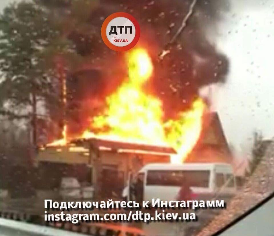 По данным сообщества "ДТП.Киев" на месте пожара ждут спасателей.