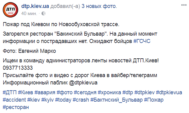Под Киевом горит популярный ресторан на Ново-Обуховской трассе