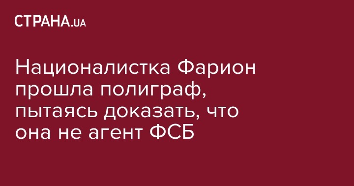 И вот 24 ноября во Львове состоялась проверка на полиграфе, во время которой Фарион задали 11 вопросов с целью выяснить, сотрудничала ли она со спецслужбами иностранных государств (в частности, ФСБ России), сама или вместе с кем-то. А также, собирала ли информацию для спецслужб, и получала ли оперативный псевдоним.