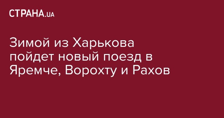 С 10 декабря в "Укрзализныце" запланировали к запуску новый железнодорожный маршрут "015О" сообщением Харьков - Рахов. У поезда будет три остановки на Прикарпатье: Ивано-Франковск, Яремче и Ворохта.