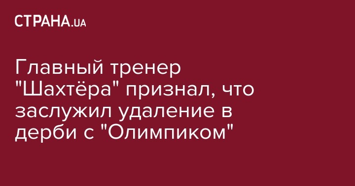 Главный тренер "Шахтёра" признал, что заслужил удаление в дерби с "Олимпиком"