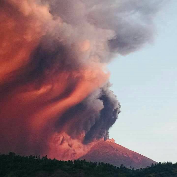 Над верхушкой вулкана видны массивные столбы дыма, которые поднимаются на высоту до 3 км. Гора начала проявлять активность еще на прошлой неделе, и власти опасаются полномасштабного извержения. В понедельник уровень опасности подняли до красного. Люди, живущие поблизости от вулкана, могут быть принудительно эвакуированы. В прошлый раз Агунг извергался в 1963 году.
