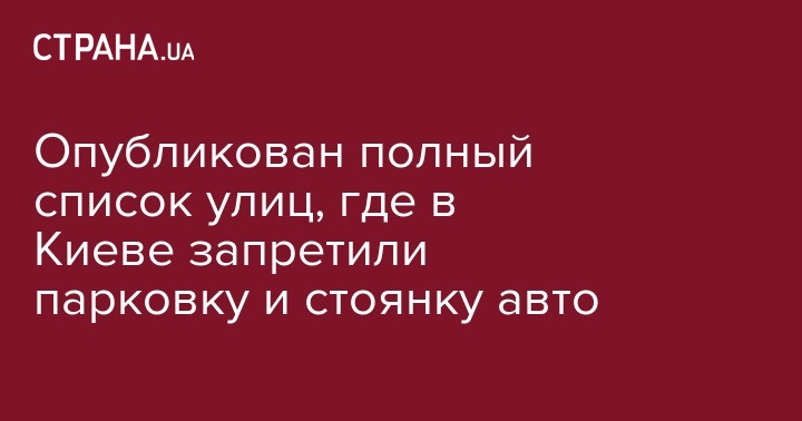 Опубликован полный список улиц, где в Киеве запретили парковку и стоянку авто
