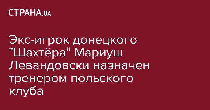 Экс-игрок донецкого "Шахтёра" Мариуш Левандовски назначен тренером польского клуба