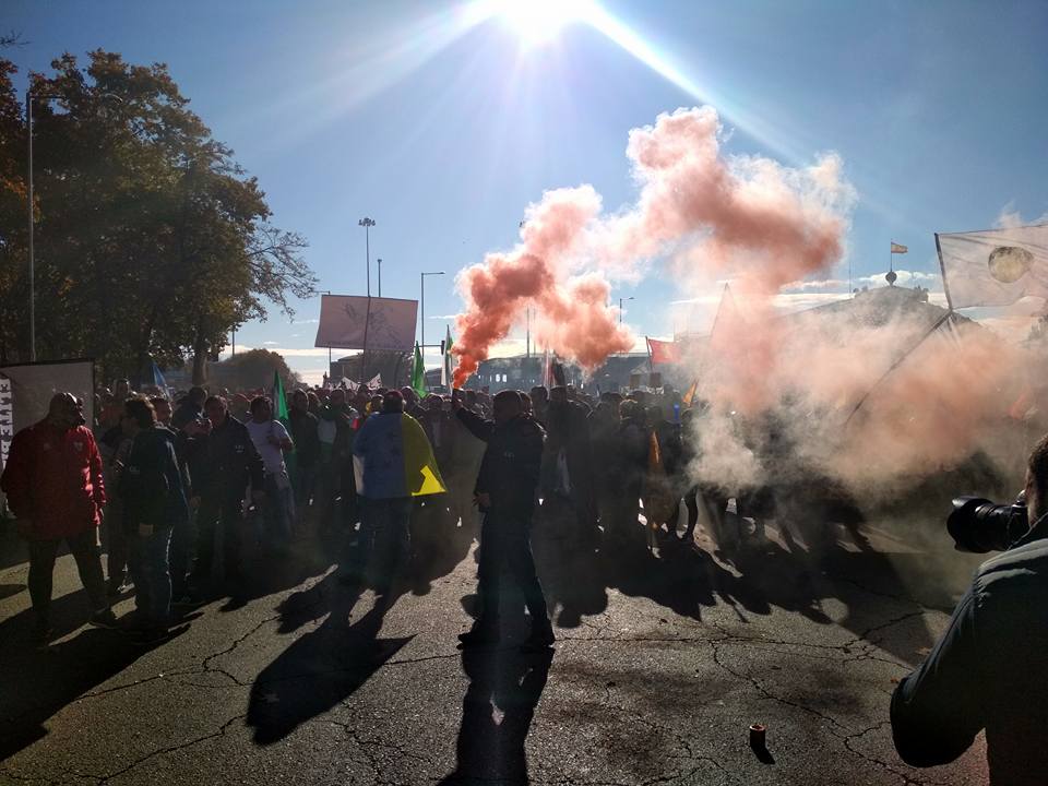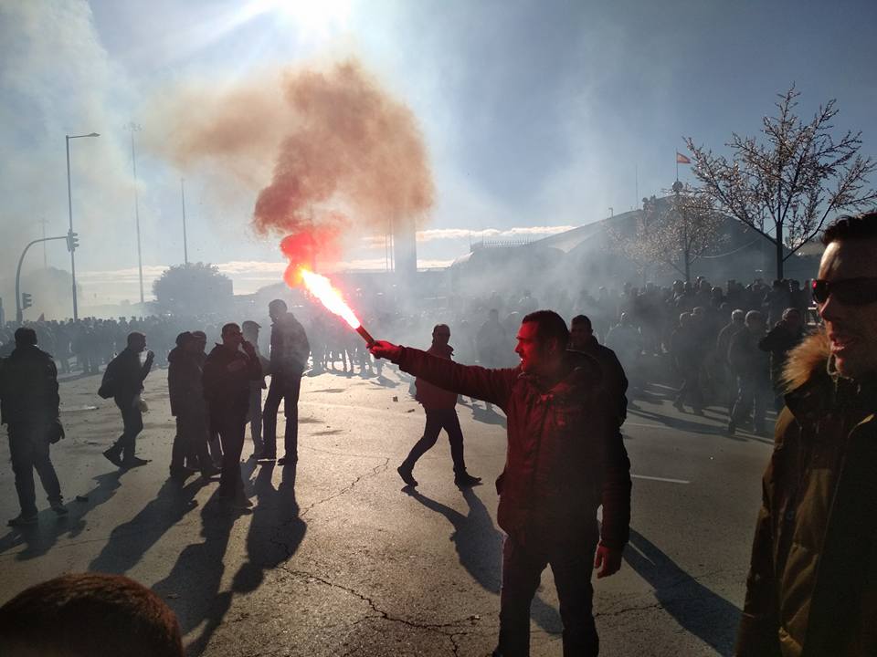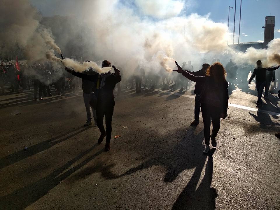Люди вовсю используют петарды и файеры. На акции заявлено участие 20 тыс. человек.