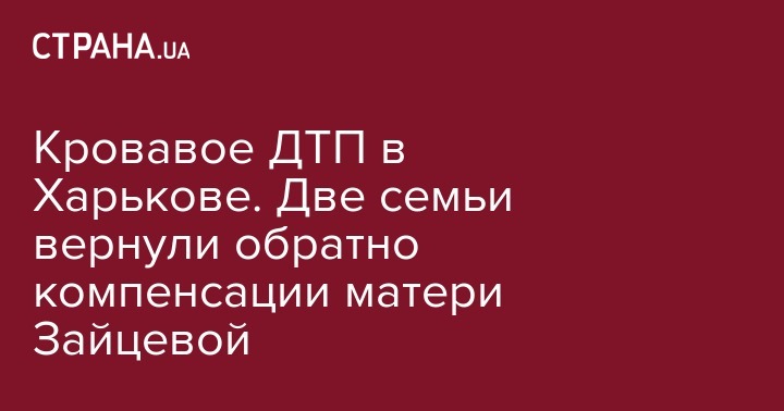 Две семьи вернули деньги матери Елены Зайцевой – девушки-водителя, которая совершила ДТП в Харькове, в результате которого погибли шесть и пострадали пять человек. Об этом сообщила адвокат этих семей Екатерина Калюжная, передает ТСН.