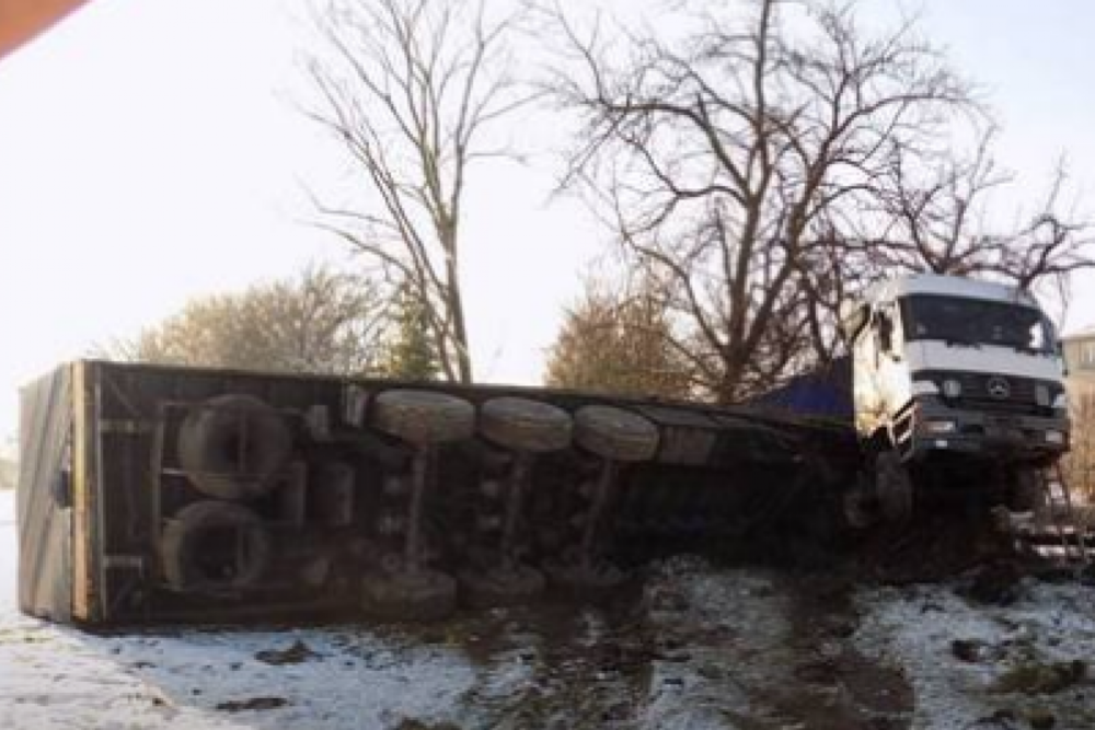 На трассе Киев-Чоп перевернулась фура со стройматериалами в результате столкновения с легковым авто. Об этом пишет пресс-служба полиции Львовской области. Авария произошла в селе Горное. От удара фура, загруженная строительными материалами, съехала на обочину и перевернулась.