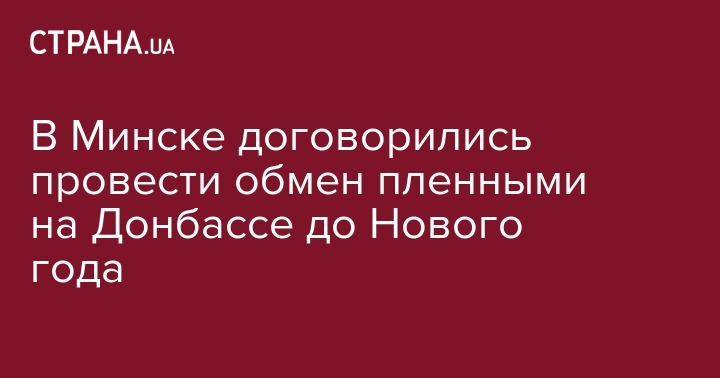 Стороны переговоров в Минске подтвердили готовность обменять пленных до конца года. Об этом сообщила в Facebook пресс-секретарь представителя Украины Леонида Кучмы Дарка Олифер.
