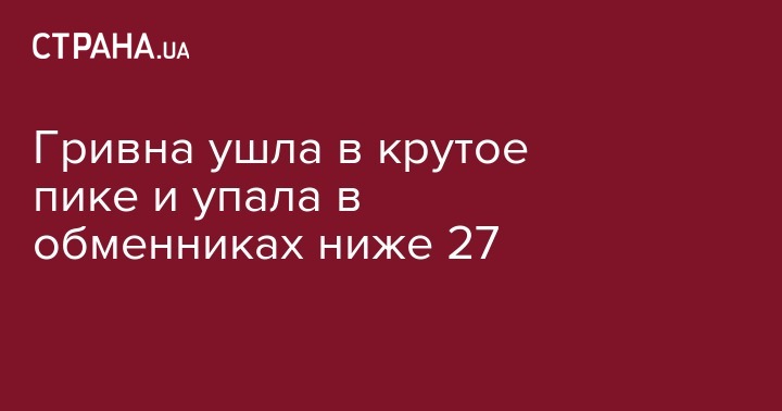 Гривна ушла в крутое пике и упала в обменниках ниже 27