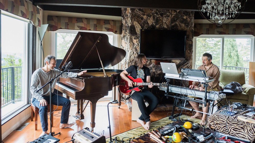 "Спасибо Игорю и его жене Жене за прекрасную домашнюю студию и украинское гостеприимство", - подписал фото Вакарчук, который позировал на фото босиком с другими музыкантами.